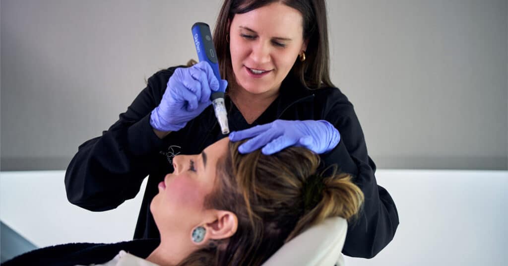 Woman receiving a microneedling treatment at Smart Skin Dermatology